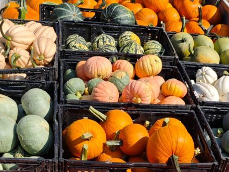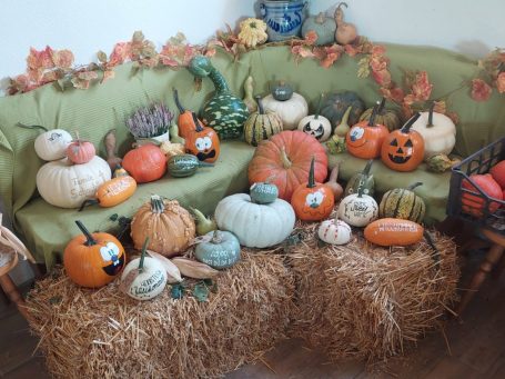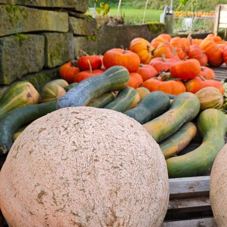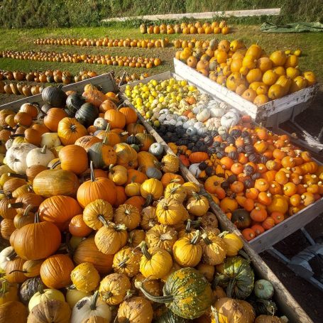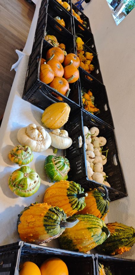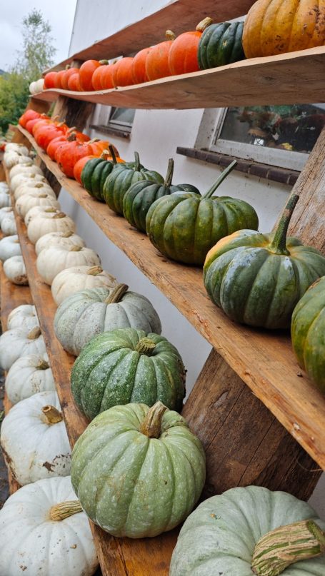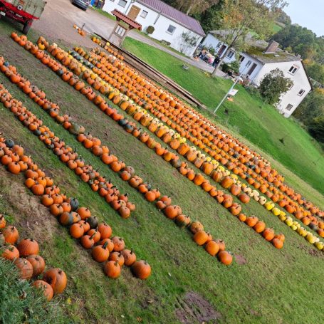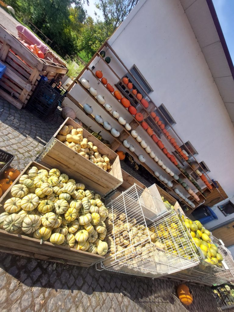 Willkommen in unserer Kürbiswelt: von kleinen Zierkürbissen bis zu riesigen Schnitzkürbissen – alles direkt vom Hof.