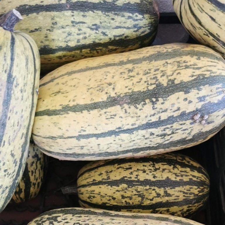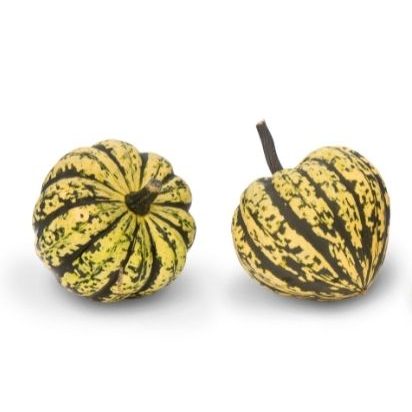 Der Harlequin bringt mild-süßliches, festes Fruchtfleisch mit. Beliebt zum Backen, Füllen oder Grillen. Seine Schale ist nicht essbar, die Früchte halten sich rund drei Monate. Ein leichter, bekömmlicher Kürbis mit wenig Kalorien.