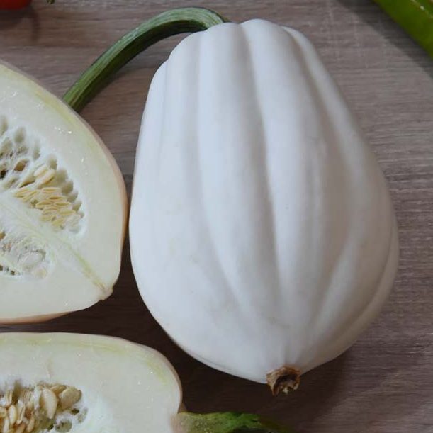 Dieser französische Klassiker hat mildes, leicht süßliches, etwas wässriges Fruchtfleisch. Beliebt für Suppen, Einmachen oder Pürees. Schale nicht essbar, Lagerzeit drei bis vier Monate. Dekorativ und traditionell.